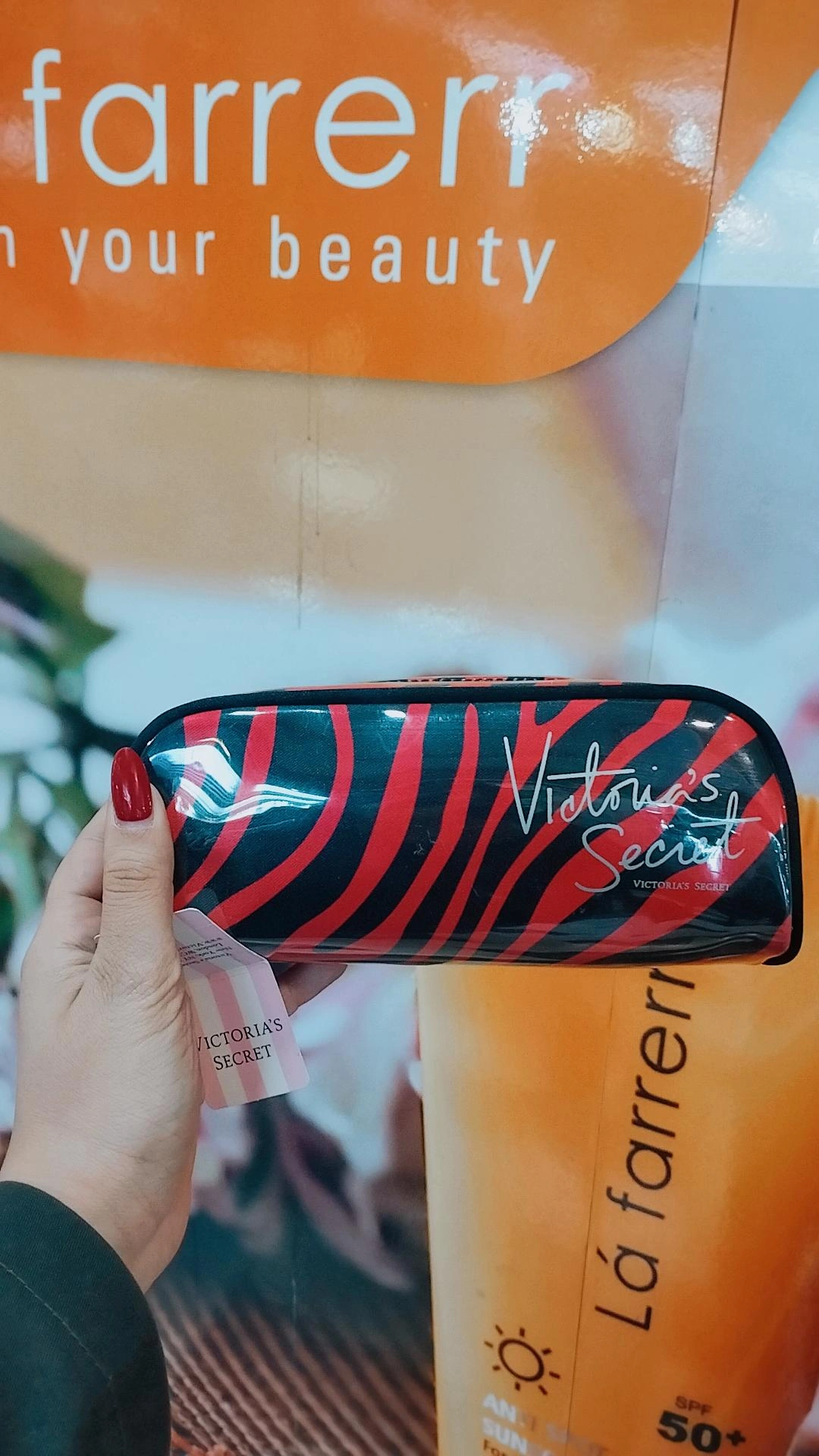کیف آرایشی ویکتوریا سکرت صد در صد اورجینال طرح راه راه مشکی قرمز