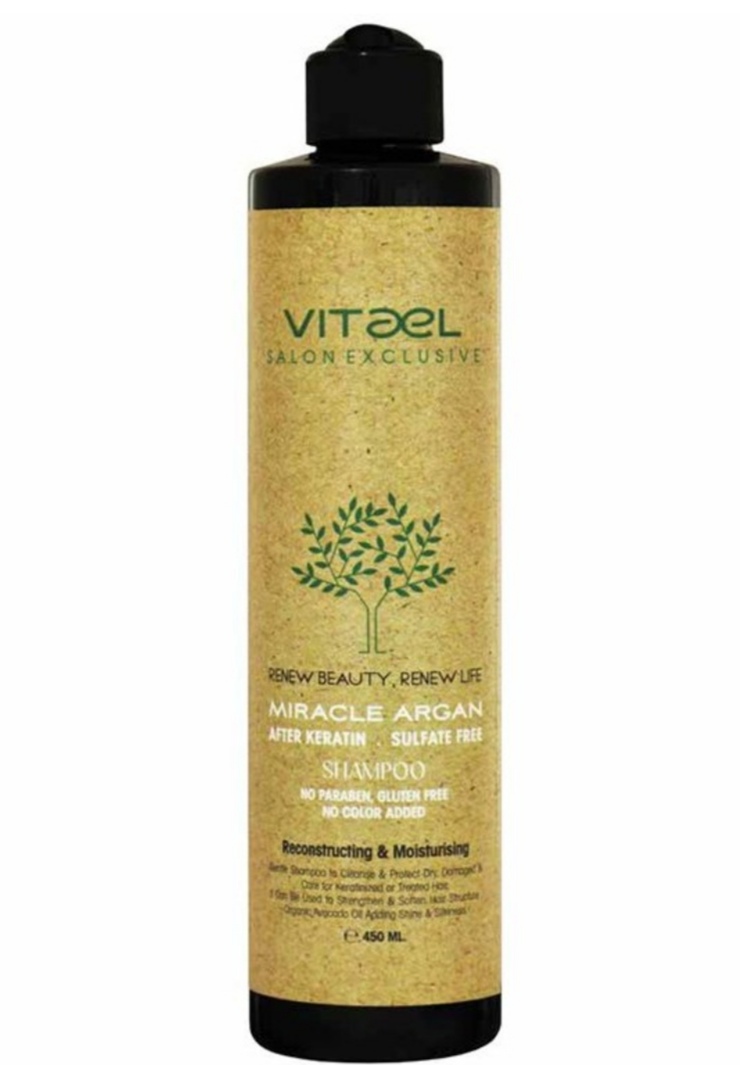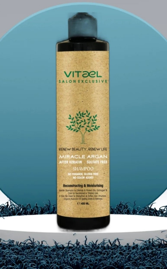 شامپو میراکل آرگان ویتاال مناسب موهای خشک و آسیب شده ،فاقد سولفات و پارابن ،گلوتن و رنگدانه مناسب کف سر نرمال تا چرب فرمول شده در کشور ایتالیا . ساختار بر پایه مواد گیاهی