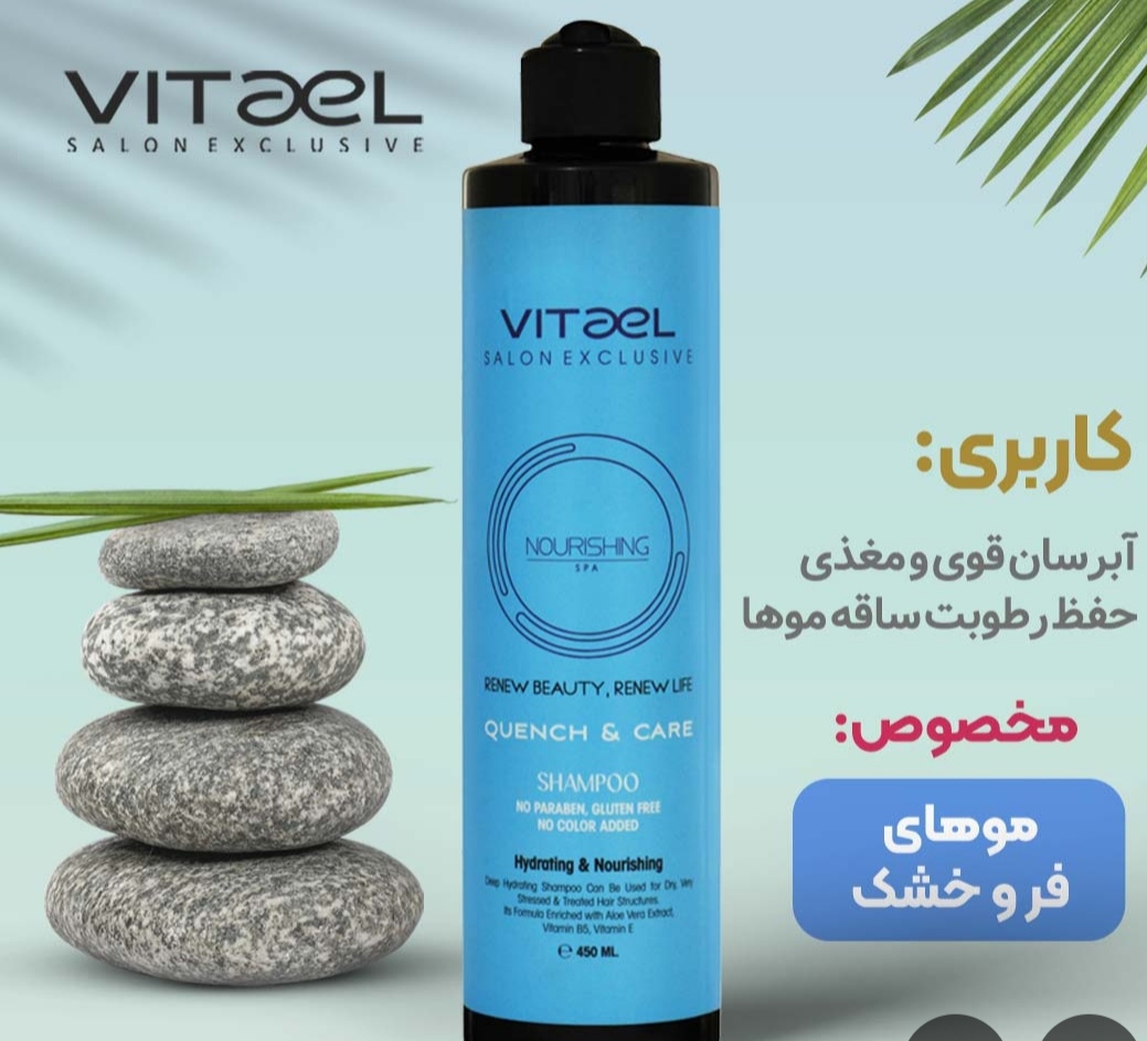 شامپو آبرسان ویتاال برای مو های خشک و فر و کم آب آبرسانی عمیق جلوگیری از خشکی ساقه مو آبرسانی موهای خشک و مجعد و وزن