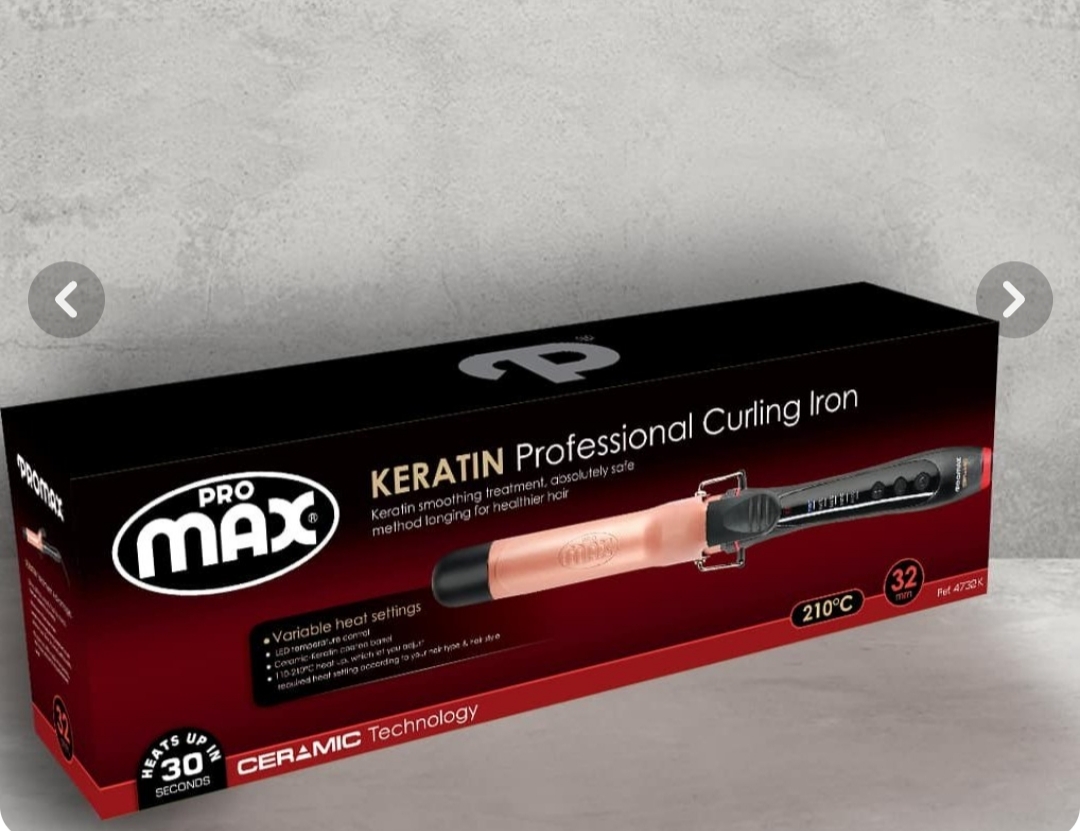 فر کننده مو کراتین سرامیک حرفه ای پرومکس سایز 32مدل 4732k,لوله با روکش سرامیکی و کراتین ،قطر لوله 32mm,دارای صفحه نمایشگر ،نوع عایق برای استفاده هر دو دست ،دارای دستکش نسوز سه انگشتی،دارای ضمانت 24ماهه،