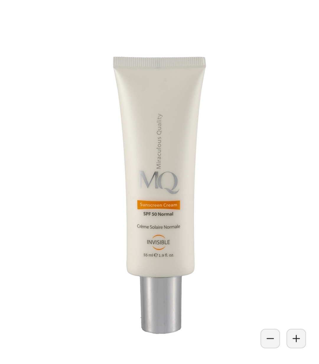 کرم ضدآفتاب بی رنگ پوستهای نرمال ام کیو SPF50,حجم 55میل