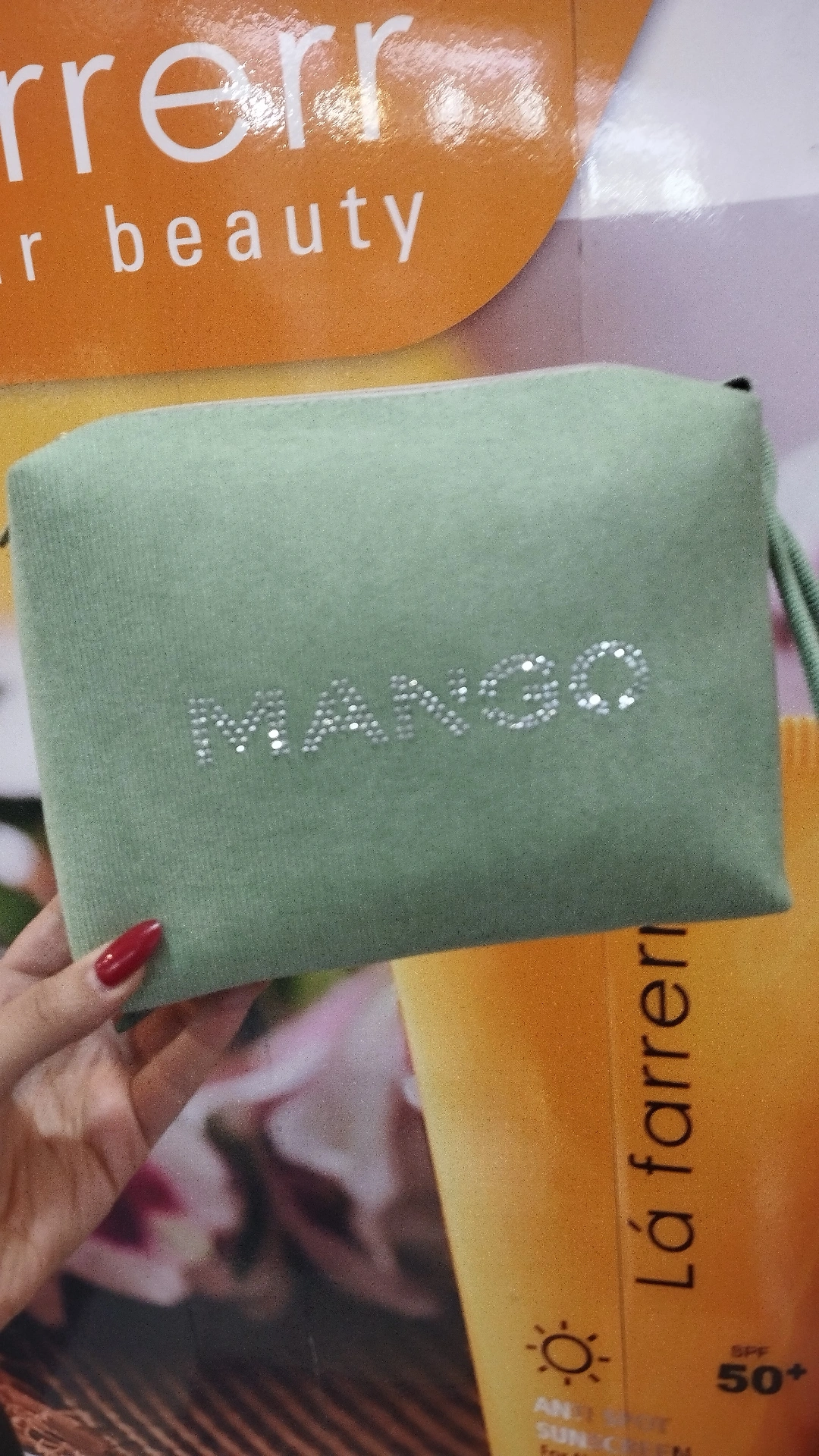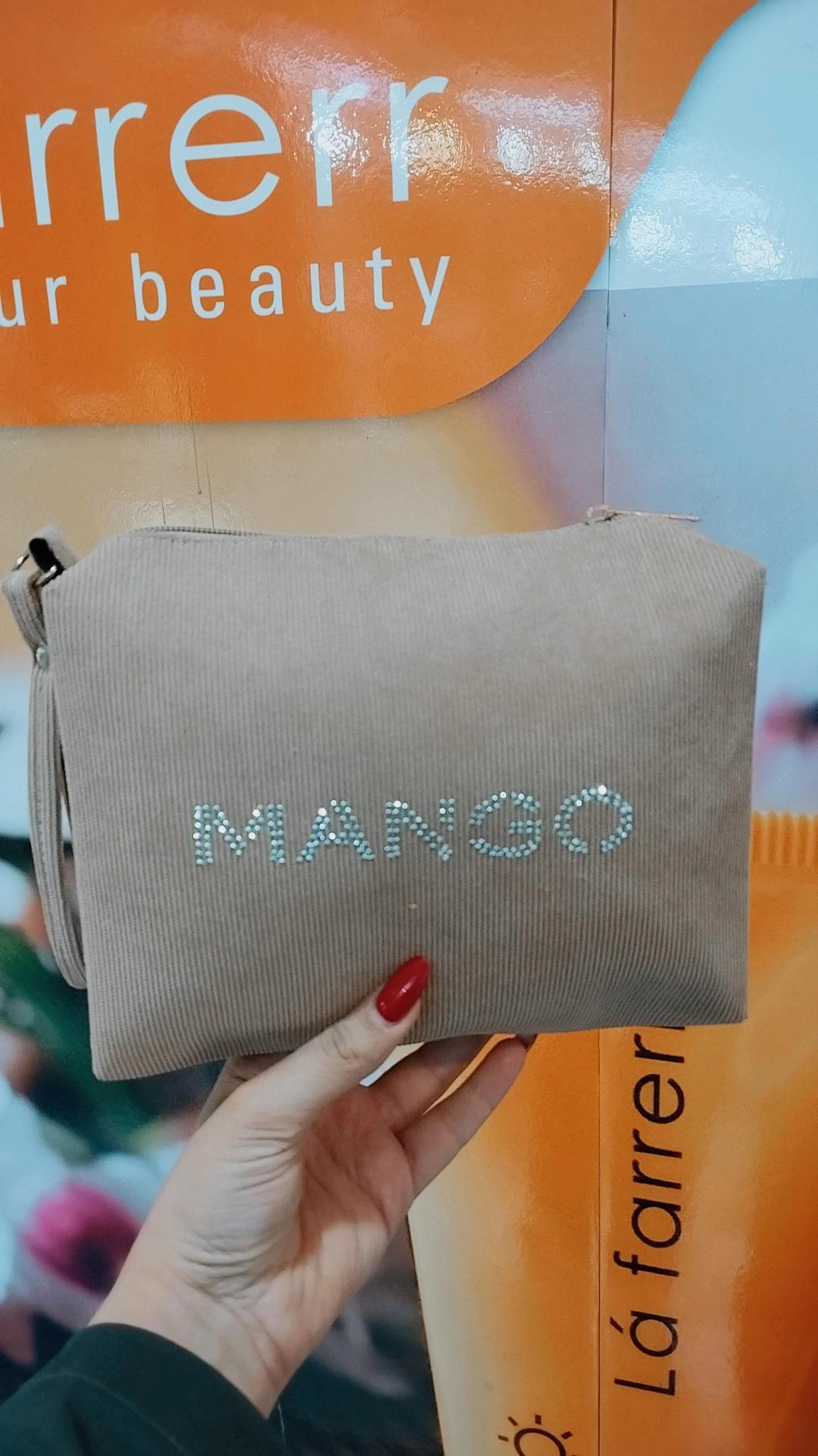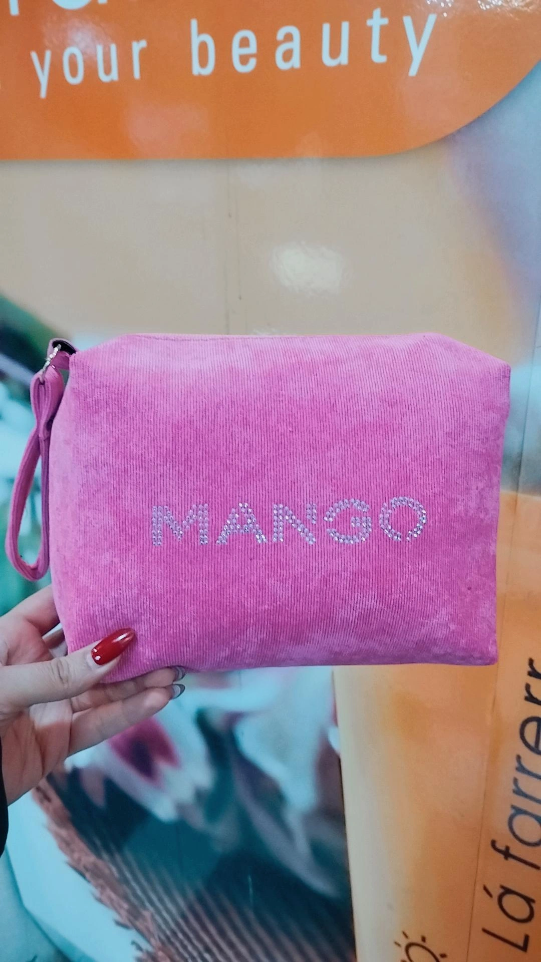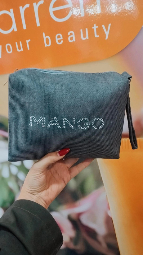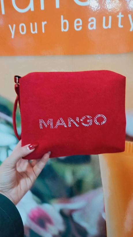 کیف آرایشی زیبا و جادار طرح منگو مناسب مسافرت بدلیل جای خوب و استاندارد مناسب بانوان خوش سلیقه ،طرح زیبای پارچه مخمل کبریتی